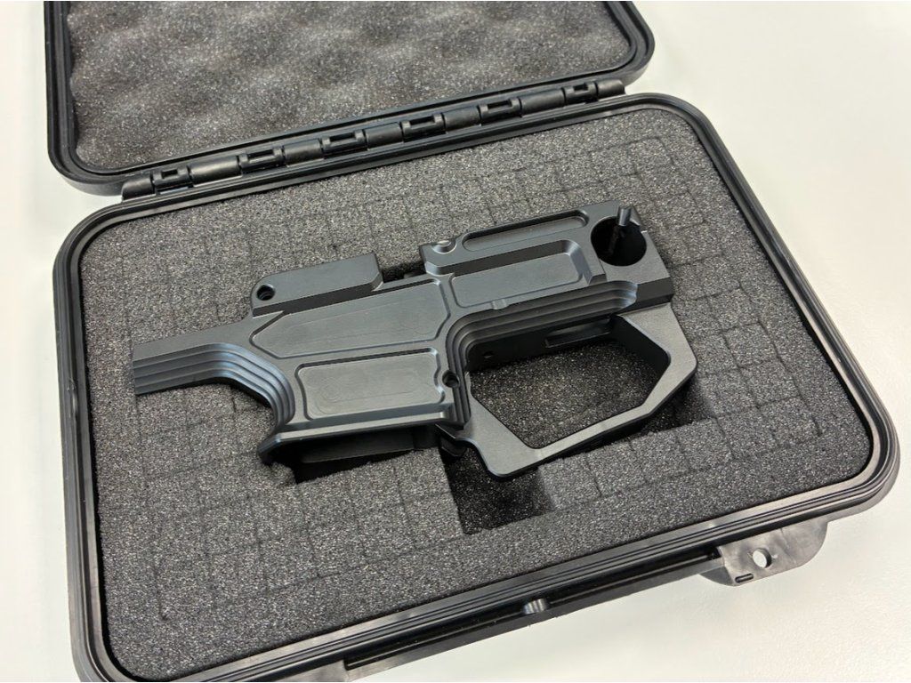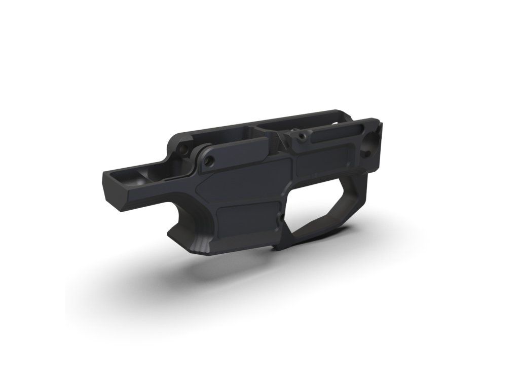 Kovové pouzdro spouštědla obráběné z letecké slitiny 7075-T6. Kromě vyšší tuhosti a menších vůlí má pouzdro ještě zvětšený náběh zásobníkové šachty, takže navaděč už není potřeba. Zachovali jsme kompatibilitu s veškerými továrními díly i běžně dostupnými zásobníky.